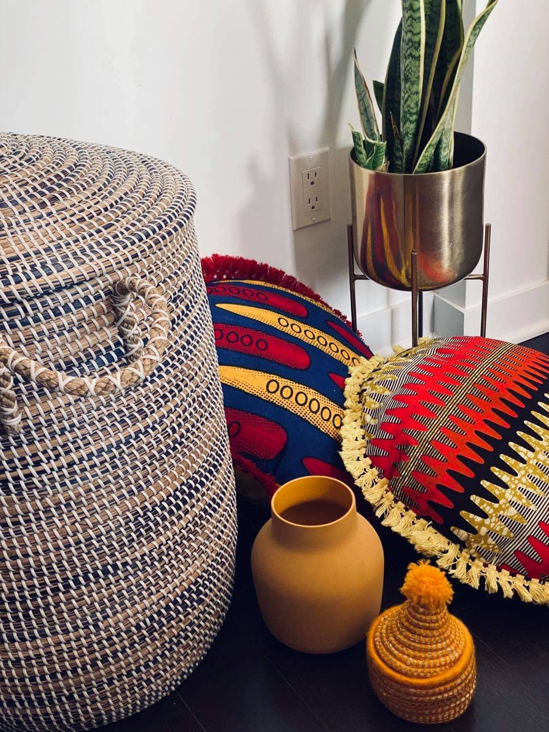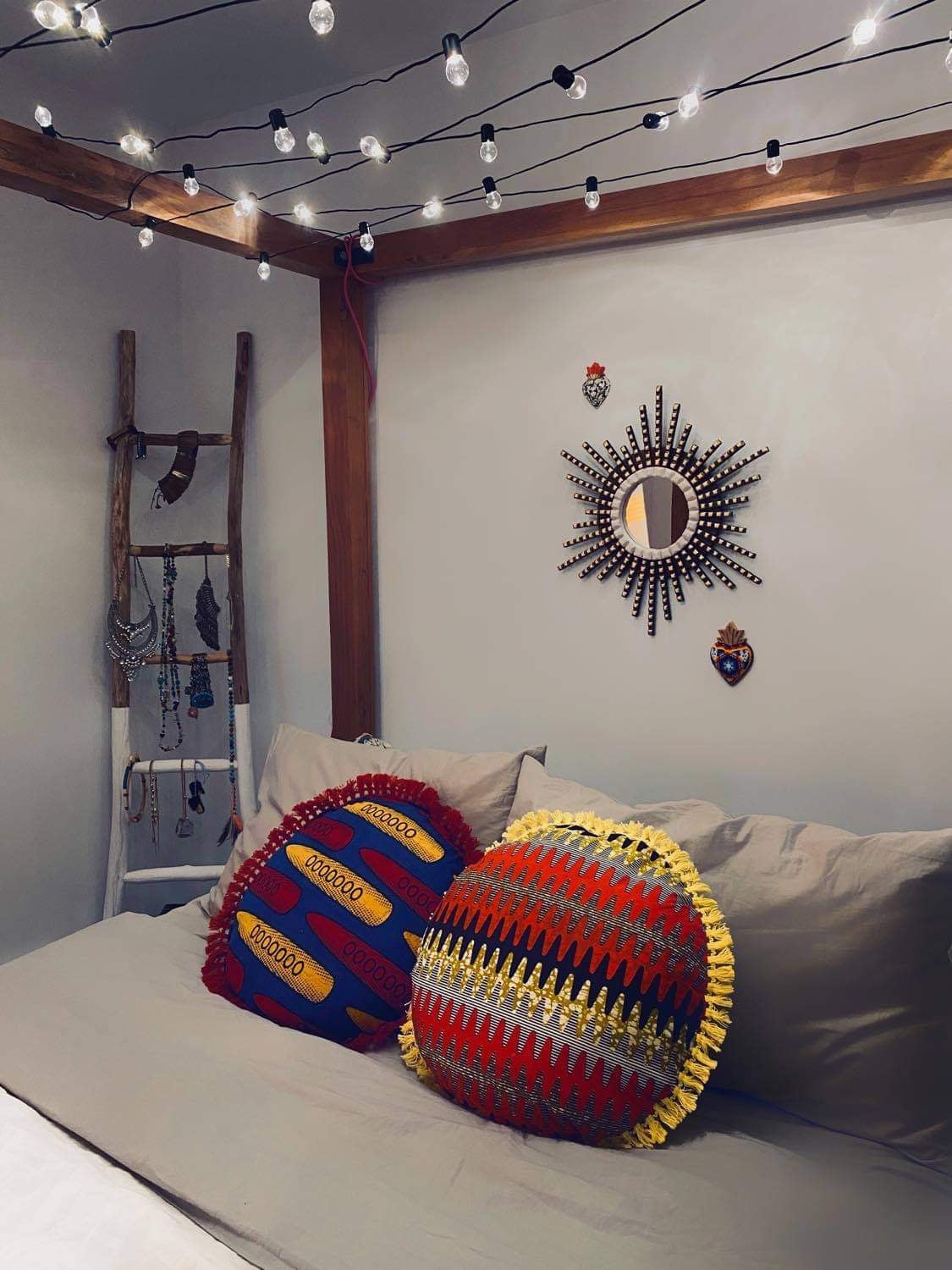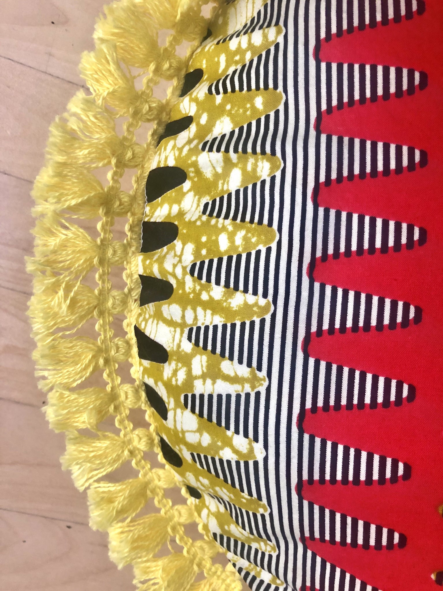 The colourful Red Sun round pillow will bring warmth and comfort to your home.