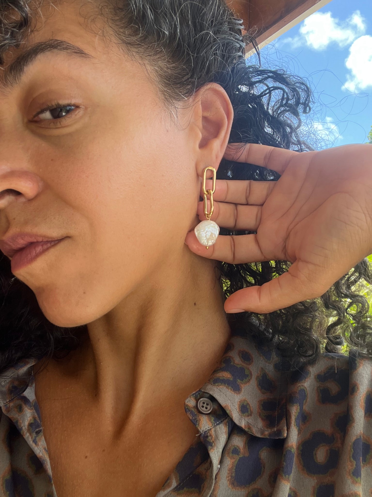 • Design : Chaque boucle d'oreille présente un maillon trombone doré, épuré et allongé, qui offre une ligne nette et architecturale. Cet élément moderne suspend avec grâce une perle baroque plate d'eau douce, captivante et naturellement unique.